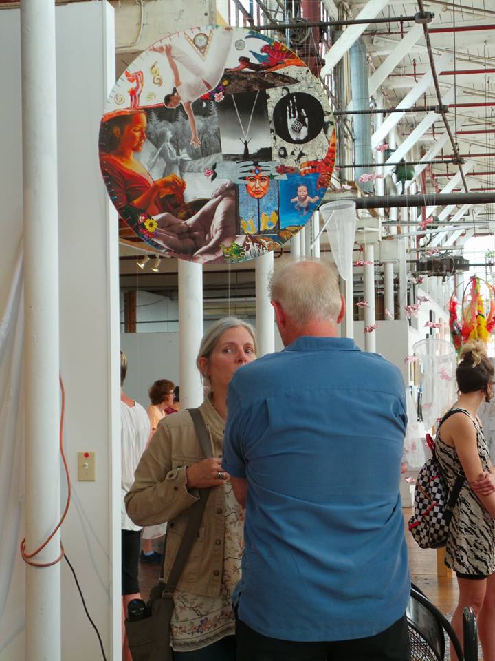 This recycled art piece is a series of circles, moments in time creating a hole, a wound, an open wound, an epic personal wound needing continual caring and healing buffered by threads and nets of many colors. The healing is not instant or quick, it is a lifetime of healing of caring and caring enough to mend and buffer the hole of emptiness inside.