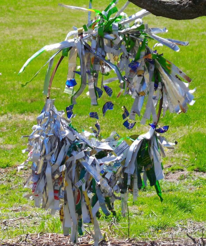 - recycling of discarded material to make something new that shines in the light reminding us of grandmother spider connecting us all in this fragile place we call the web of life.