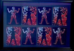 42 x 36” cloth banner of 17 prints in a grid pattern,